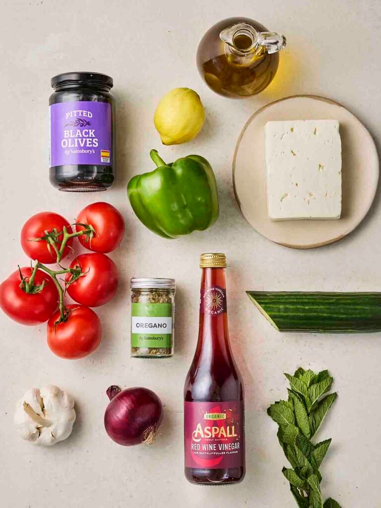 kcalA crisp and refreshing salad made with fresh vegetables, olives, and creamy feta cheese. Light, simple, and perfect for any meal. Ready in minutes with no cooking needed.